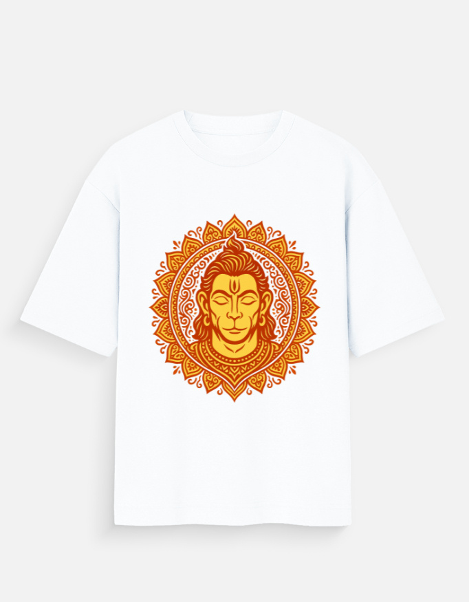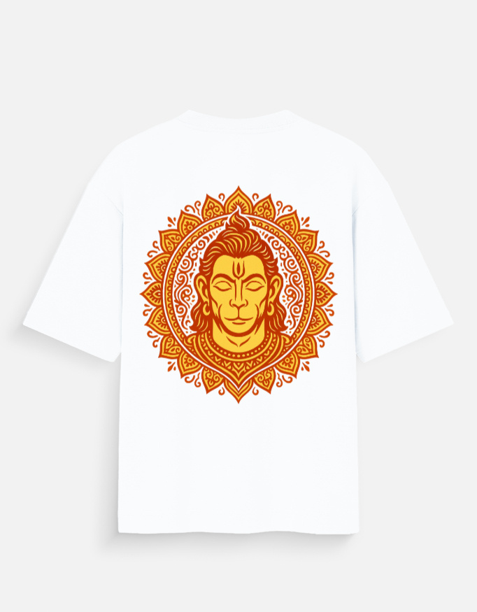 Divine Hanuman Glow T-Shirt – Spiritual Energy Edition | Sacred Mandala Design | Unisex Oversized